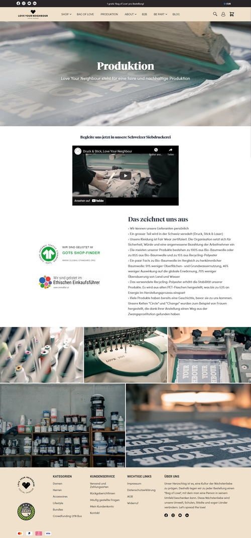 Erstellung des Designs anhand der Corporate Identity Vorgaben von Love Your Neighbour.